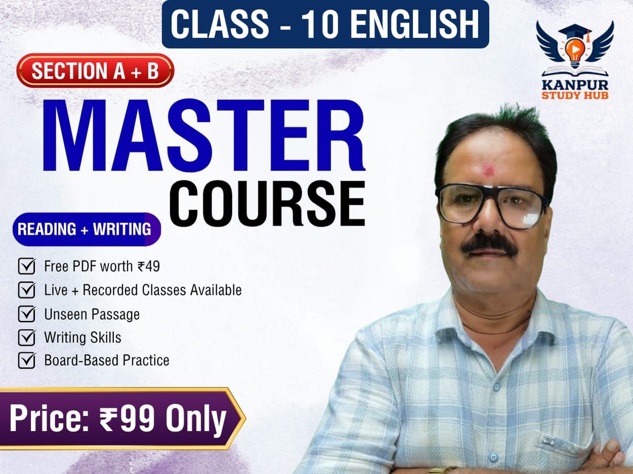 🎯 Master Course for High School Students – Only ₹99! Is course mein aapko English cover karaya jaega, jismein Section A (Reading) aur Section B (Writing) dono included hain. Aapko har topic live class aur recorded video ke through samjhaya jaega taaki aap kabhi bhi revise kar saken. 📘 Course Highlights: ✅ Unseen Passage – complete explanation & practice ✅ Article Writing – format, examples & presentation tips ✅ Letter Writing – both formal & informal letters ✅ Central Idea – each chapter ka full explanation ✅ Live + Recorded classes available ✅ Notes and practice material included Sirf ₹99 mein full preparation ka mauka! Join karke apni English preparation ko next level par le jao 💪